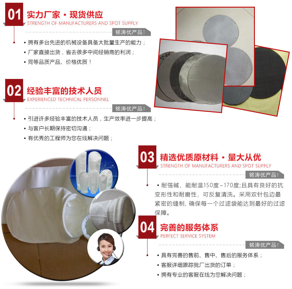 安平縣銘濤絲網(wǎng)制造有限公司 主營(yíng): 尼龍過(guò)濾袋、 無(wú)紡布濾袋、 針刺呢過(guò)濾袋等產(chǎn)品專(zhuān)業(yè)生產(chǎn)加工的公司,擁有完整、科學(xué)的質(zhì)量管理體系,技術(shù)力量雄厚,技術(shù)設(shè)備先進(jìn)。